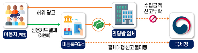 주식 리딩방 운영업자 A는 ‘수익률 300% 보장’, ‘미공개 폭등 작전주 정보’ 등 허위광고로 개미투자자들의 ‘VIP 멤버십’에 가입을 유도했다. 그리고 국내 미등록 결제대행업체를 통해 수억원대 고액 회원비를 결제토록 하는 수법으로 거액의 매출 신고를 회피했다.