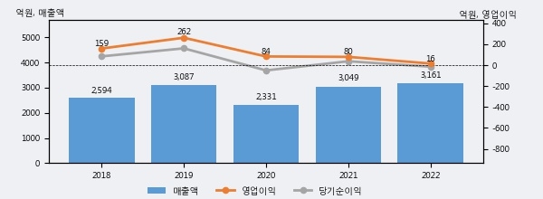 최근 실적을 살펴보면 2022년 매출액이 최근 5년 중 가장 높은 실적을 기록했음을 알 수 있다. 이전 최고 실적이었던 2019년 보다도 2.4%(74억 4천만원) 늘어난 것으로 나타났다.