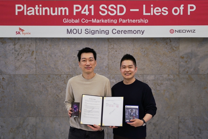 두 회사는 SK하이닉스의 글로벌 판매 인프라를 활용, 네오위즈의 액션 게임 'P의 거짓'과 SK하이닉스의 '플래티넘 P41' 등 주력 SSD(솔리드 스테이트 드라이브) 제품에 대한 국내외 마케팅을 공동 진행할 예정이다.