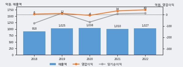 JW신약의 2022년 매출액은 1027억으로 전년대비 1.7% 상승했고, 영업이익 또한 43억으로 전년대비 25.1% 상승했다. 이 회사의 매출액 증감률과 영업이익 증감률은 각각 코스닥 하위 31%, 상위 39%에 해당된다.