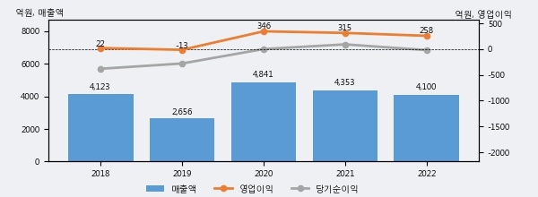 페이퍼코리아의 2022년 매출액은 4100억으로 전년대비 -5.8% 하락했고, 영업이익 역시 258억으로 전년대비 -17.9% 하락했다. 이 회사의 매출액 증감률과 영업이익 증감률은 각각 코스피 하위 10%, 하위 32%에 해당된다.