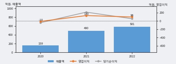 최근 실적을 살펴보면 2022년 매출액이 최근 3년 중 가장 높은 실적을 기록했음을 알 수 있다. 이전 최고 실적이었던 2021년 보다도 18.5%(90억 9천만원) 늘어난 것으로 나타났다.