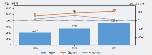최근 실적을 살펴보면 2022년 매출액이 최근 3년 중 가장 높은 실적을 기록했음을 알 수 있다. 이전 최고 실적이었던 2021년 보다도 32.0%(870억 3천만원) 늘어난 것으로 나타났다.