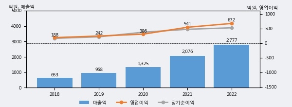 최근 3년간의 실적을 살펴보면 안정적 성장세를 보이고 있다. 최근 3년간 매출로 볼 때 매년 꾸준히 증가하고 있다. 다만 최근에 그 증가폭이 다소 감소하고 있다.