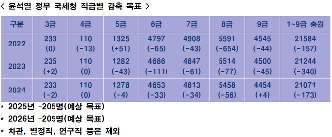 위 계획을 보면 국세청은 2022년에 이미 157명을 줄였으며, 2023년 340명(목표치), 2024년 173명(목표치), 2025년과 2026년 각각 205명씩을 줄일 계획이다.