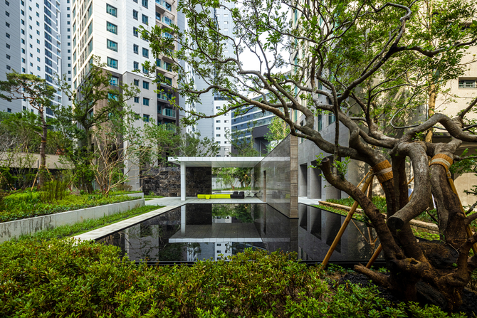 옥상 조경을 적극적으로 도입해 40% 이상의 생태면적률을 적용함으로써 대도시 내 고층 아파트 단지임에도 충분한 녹지환경을 조성했다.