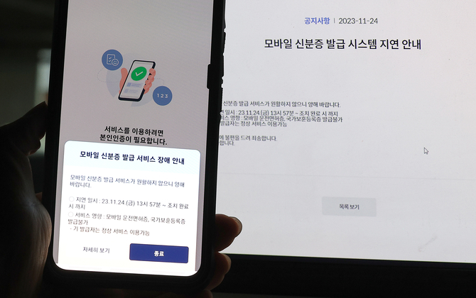 모바일 신분증 신규 발급 서비스는 6시간 40분 만인 이날 오후 8시40분께야 전면 복구됐다.