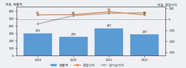 알로이스의 2022년 매출액은 전년대비 -21.6% 줄어든 287억원이고, 영업이익 역시 전년대비 -38.2% 줄어든 43억원을 기록했다. 이 회사의 매출액 증감률과 영업이익 증감률은 각각 코스닥 하위 9%, 하위 29%에 해당된다.