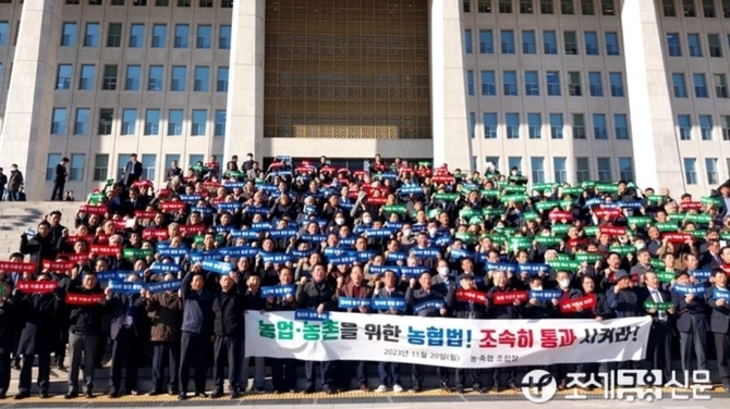 법사위 일정상 농협법이 올해 안에 법사위를 통과하지 못할 수 있다는 관측이 나오자, 지난 11월 20일 전현직 농협 조합장들이 대규모 국회 집회를 열어 농협법에 반대하는 법사위 의원들을 규탄한 바 있다. 그러나 집회를 주도했던 성명불상의 ‘조합장대책위원회’의 실체가 농협중앙회 비서실이라는 소문이 돌면서 국회 분위기가 더 험악해지는 역풍을 맞기도 했다.