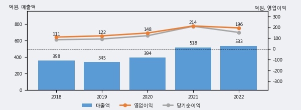 최근 3년간의 실적을 살펴보면 안정적 성장세를 보이고 있다. 최근 3년간 매출로 볼 때 매년 증가하고 있다. 다만 최근에 그 증가폭이 다소 감소하고 있다.