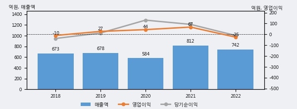아이에이는 2022년 매출액 742억원과 영업이익 -25억원을 기록했다. 전년대비 매출은 -8.6% 하락했고, 영업이익은 적자전환했다. 이 회사의 매출액 증감률과 영업이익 증감률은 각각 코스닥 하위 19%, 하위 12%에 해당된다.