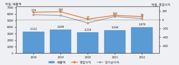 최근 실적을 살펴보면 2022년 매출액이 최근 5년 중 가장 높은 실적을 기록했음을 알 수 있다. 이전 최고 실적이었던 2019년 보다도 9.1%(331억 3천만원) 늘어난 것으로 나타났다.