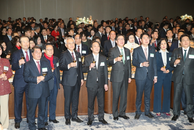 이날 신년 인사회에는 장인화 부산상의 회장을 비롯한 지역 경제계 대표들과 박형준 부산시장, 안성민 부산시의회 의장, 하윤수 부산시 교육감 등 주요 인사 600여 명이 참석했다.