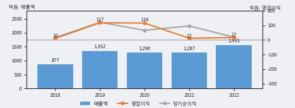 최근 실적을 살펴보면 2022년 매출액이 최근 5년 중 가장 높은 실적을 기록했음을 알 수 있다. 이전 최고 실적이었던 2019년 보다도 14.7%(199억 1천만원) 늘어난 것으로 나타났다.