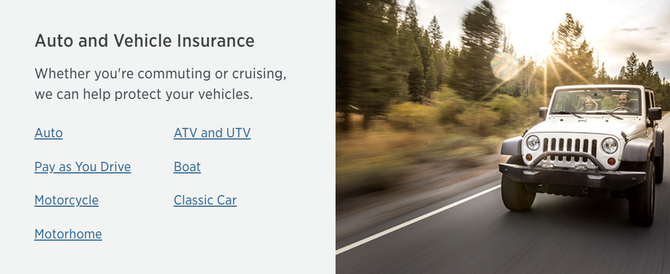 자동차보험 이외에 일반 손해보험, 생명보험과 연금 등 여러 보험상품은 물론 투자와 은행 상품을 미국 현역 군인 및 퇴역 군인 그리고 그 가족들에게 판매한다. 오늘날에는 판매 대상을 넓혀 보험사기가 상대적으로 적은 생명보험과 연금 상품의 경우에는 군인 가족이 아닌 일반인들에게도 판매하고 있다.