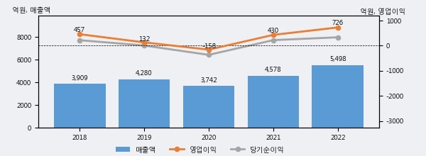 최근 실적을 살펴보면 2022년 매출액이 최근 5년 중 가장 높은 실적을 기록했음을 알 수 있다. 이전 최고 실적이었던 2021년 보다도 20.1%(919억 9천만원) 늘어난 것으로 나타났다.