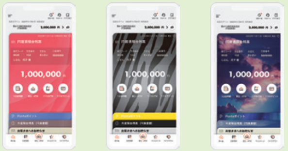 리뉴얼 된 내용은 크게 세가지이다. 첫째, 궁금한 정보를 빠르게 확인할 수 있도록 이체 관련 메뉴를 정리하고 아이콘을 도입하여 직관적으로 조작할 수 있게 하였다. 또한 최근 이용한 기능을 뉴 상단에 표시하였다. 둘째, 가지고 있는 모든 Ponta포인트 잔액을 확인할 수 있게 하였다. 셋째, 고객의 취향별로 홈 디자인을 변경할 수 있도록 하는 기능을 추가하여 총 8가지의 디자인을 선보였다.