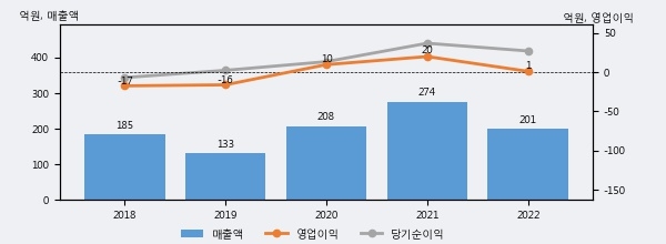 경인전자는 2022년 매출액 201억원과 영업이익 1억원을 기록했다. 전년대비 매출은 -26.8%, 영업이익은 -94.5% 각각 하락했다. 이 회사의 매출액 증감률과 영업이익 증감률은 각각 코스피 하위 2%, 하위 9%에 해당된다.