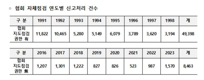 협회는 소속 회원들에 대한 지도점검 권한이 있었던 1991∼1998년에는 자체 적발해 행정조치를 요청한 건수가 연평균 6천여건에 달했다며 협회에 징계권을 부여하는 공인중개사법 개정이 시급하다고 강조했다.