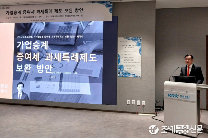 김완일 세무법인 가나 대표세무사는 지난 19일 금융조세포럼(회장 김도형)이 서울 여의도 한국거래소 IR센터 회의실에서 개최한 제123차 포럼에서 "기업의 원활한 승계를 지원하기 위한 제도의 취지를 고려할 때 최초 증여시 적용한 기존 법규를 적용하는 것은 불합리하다"면서 이 같이 주장했다.