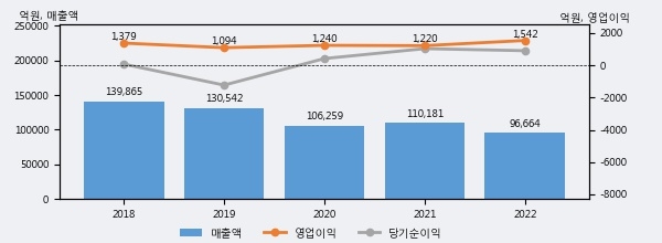 SK네트웍스의 2022년 매출액은 9조 6664억으로 전년대비 -12.3% 하락했고, 영업이익은 1542억으로 전년대비 26.4% 상승했다. 이 회사의 매출액 증감률과 영업이익 증감률은 각각 코스피 하위 6%, 상위 37%에 해당된다.