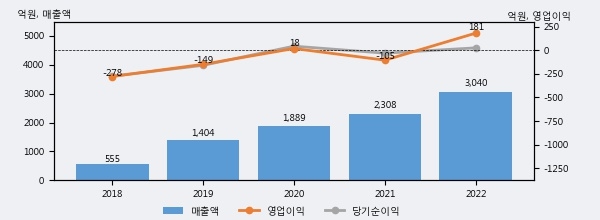 필옵틱스의 2022년 매출액은 3040억으로 전년대비 31.7% 상승했고, 영업이익은 181억으로 흑자전환했다. 이 회사의 매출액 증감률과 영업이익 증감률은 각각 코스닥 상위 23%, 상위 8%에 해당된다.