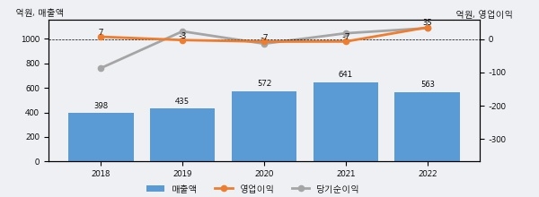 한빛소프트의 2022년 매출액은 전년대비 -12.2% 줄어든 563억원이고, 영업이익은 흑자전환해서 35억원을 기록했다. 이 회사의 매출액 증감률과 영업이익 증감률은 각각 코스닥 하위 16%, 상위 4%에 해당된다.