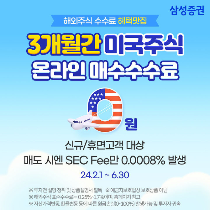 (조세금융신문=김종태 기자) 삼성증권은 1일 해외주식 온라인 매매수수료를 인하하는 '해외주식 수수료 혜택맛집 이벤트'를 6월30일까지 진행한다고 밝혔다.