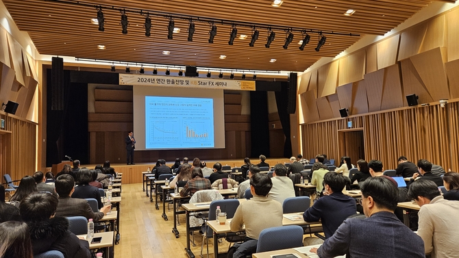 2일 국민은행은 전날 여의도 더 케이 타워에서 서울·수도권 지역의 수출입기업 CEO 및 재무담당자 60여 명을 초청해 ‘2024년 환율 전망 및 KB Star FX 세미나’를 개최했다고 밝혔다.