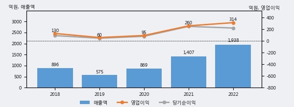 최근 3년간의 실적을 살펴보면 안정적 성장세를 보이고 있다. 최근 3년간 매출로 볼 때 매년 증가하고 있다. 다만 최근에 그 증가폭이 다소 감소하고 있다.