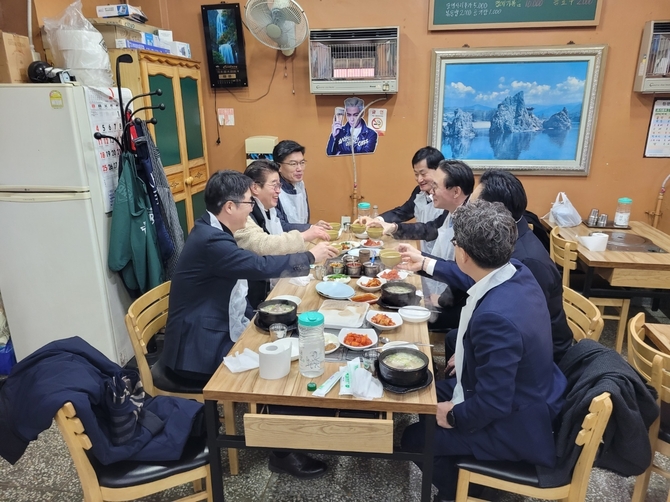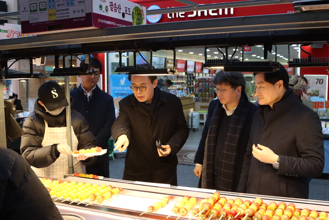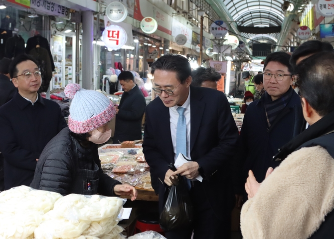 우림시장을 방문한 강 청장은 전통시장 설 경기를 살펴보고 복지시설에 전달할 설 물품을 구매하고, 시장 내 식당에서 상인회 회장 등과 순대국을 먹으며 민생 목소리를 들었다.