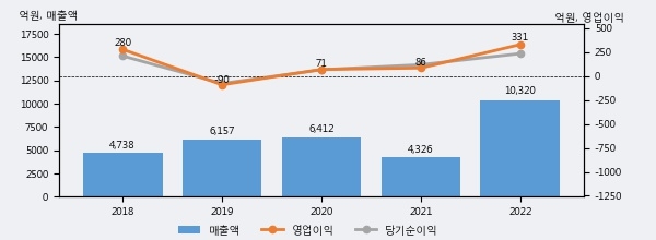 최근 실적을 살펴보면 2022년 매출액이 최근 5년 중 가장 높은 실적을 기록했음을 알 수 있다. 이전 최고 실적이었던 2020년 보다도 60.9%(3907억 4천만원) 늘어난 것으로 나타났다.