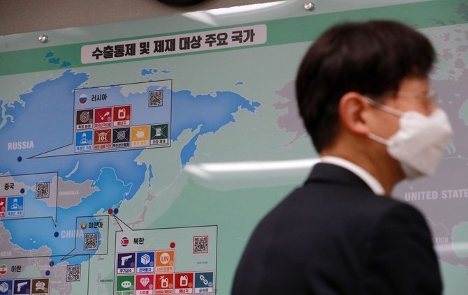 한국 정부는 국제사회의 대러시아·벨라루스 수출 통제 공조를 위해 지난 24일 수출 통제 대상이 되는 상황허가 대상 품목에 682개를 추가하는 내용으로 개정한 전략물자 수출입 고시를 시행하고 있다.