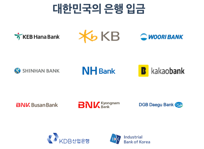 현재 한국에서 Remitly를 통해 현금을 받을 수 있는 은행은 아래와 같다. 거의 모든 국내 은행에서 송금받을 수 있다. 하지만 지방 은행 중에서는 전북과 광주 은행은 지원하지 않고 있으며 인터넷 전문 은행 중에서는 카카오 뱅크가 유일하다.