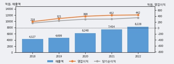 최근 3년간의 실적을 살펴보면 안정적 성장세를 보이고 있다. 최근 3년간 매출로 볼 때 매년 꾸준히 증가하고 있다. 다만 최근에 그 증가폭이 다소 감소하고 있다.