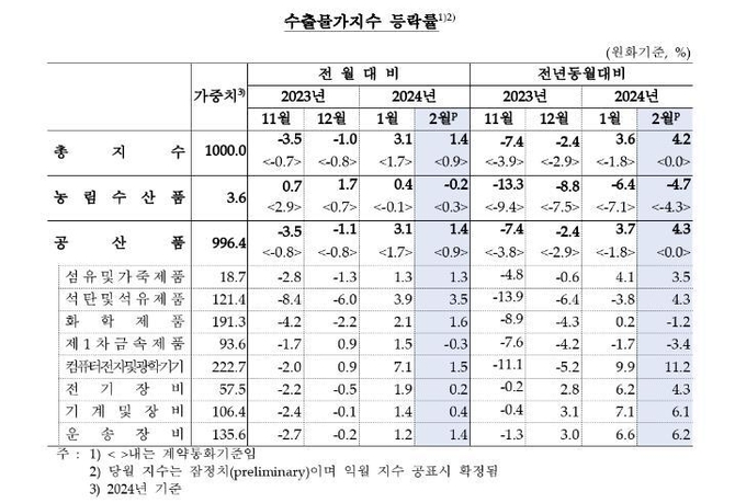 유 팀장은 "원/달러 환율이 오른 가운데 석탄·석유제품과 컴퓨터·전자·광학기기 등을 위주로 수출 가격이 높아졌다"고 말했다.