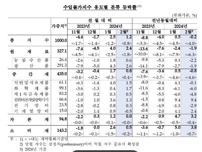 수입물가지수는 지난해 11월과 12월 두 달 연속 떨어졌다가 올해 1월(2.5%) 반등한 데 이어 2개월 연속 상승세를 유지했다.