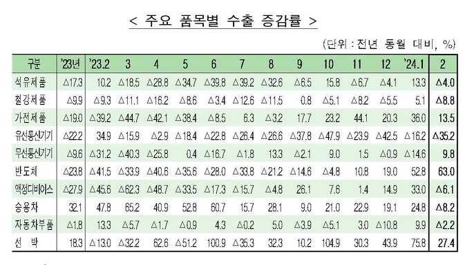 관세청은 2월 수출이 설 연휴로 인한 조업일수 감소(전년대비 -1.5일) 에도 불구하고 5개월 연속 증가했다고 밝혔다.