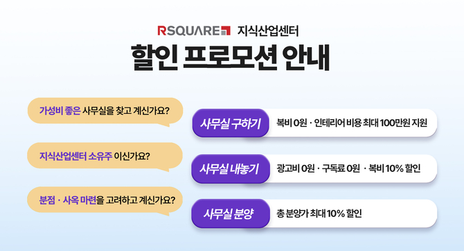 알스퀘어를 통해 특정 지식산업센터를 분양받으면 총분양가에서 10∼20%를 할인해주는 행사도 진행한다.