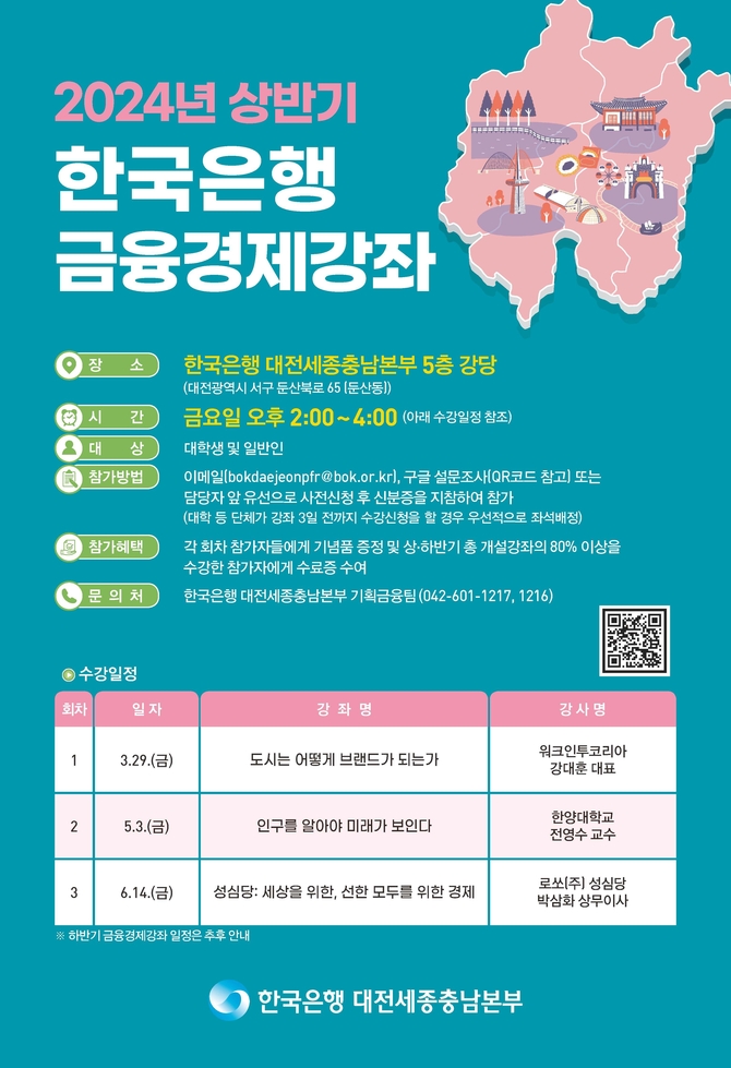상반기 1차 금융경제 강좌와 관련한 자세한 내용은 한국은행 대전세종충남본부 홈페이지를 참고하면 된다.