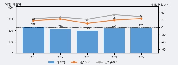 피앤씨테크는 2022년 매출액 220억원과 영업이익 24억원을 기록했다. 전년대비 매출은 1.3%, 영업이익은 21.3% 각각 상승했다. 이 회사의 매출액 증감률과 영업이익 증감률은 각각 코스닥 하위 30%, 상위 42%에 해당된다.