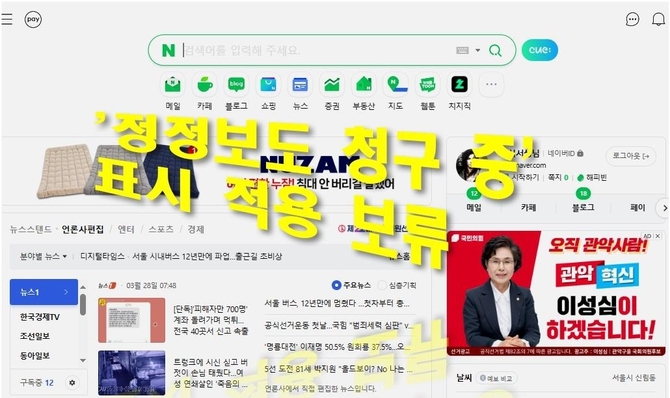 (조세금융신문=구재회 기자) 네이버가 뉴스 검색 결과를 표시할 때 정정보도가 청구된 기사에 '정정보도 청구 중'이라는 문구를 노출하기로 한 계획을 보류했다.