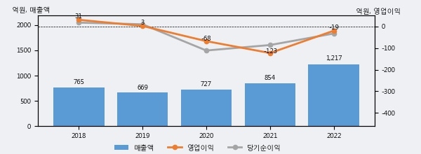 에코캡의 2022년 매출액은 전년대비 42.5% 늘어난 1217억원이고, 영업이익은 전년에 이어 적자가 지속되어 -19억원을 기록했다. 이 회사의 매출액 증감률과 영업이익 증감률은 각각 코스닥 상위 16%, 상위 21%에 해당된다.