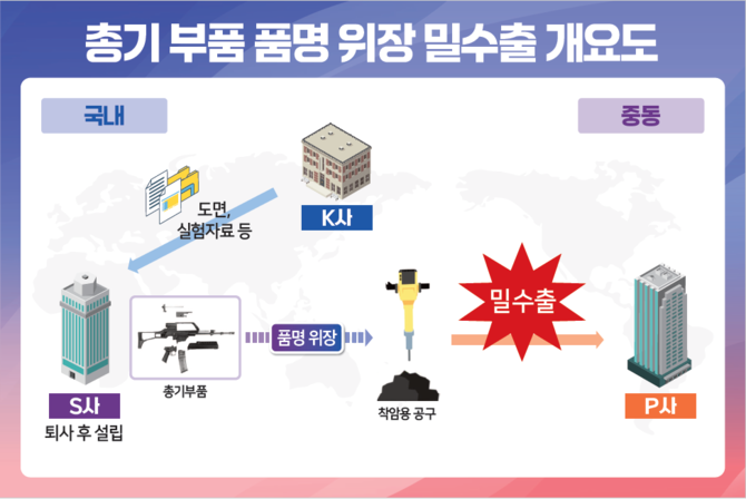특히, 주범 A씨는 우리나라의 대표적인 총기제조 방산업체인 K사의 수출담당자로 근무하면서 해외거래처를 가로채기로 마음먹고, 개인 이메일로 보내놓은 도면, 실험자료 등의 정보를 활용하여 동일한 총기부품을 제작한 후 K사의 거래처인 P사로 수출했던 것으로 파악됐다.