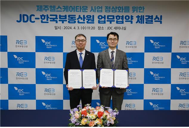 (조세금융신문=구재회 기자) 한국부동산원은 3일 제주국제자유도시개발센터(JDC)와 '제주 헬스케어타운 사업 정상화를 위한 업무협약(MOU)'을 체결했다고 밝혔다.
