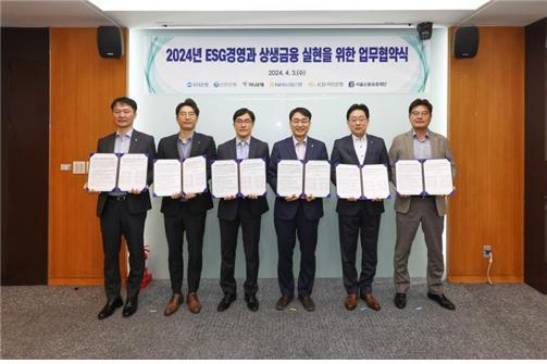 4일 서울신보는 전날 우리은행·신한은행·하나은행·NH농협은행·KB국민은행과 '2024년 ESG경영과 상생금융 실현을 위한 업무협약'을 체결했다고 밝혔다.