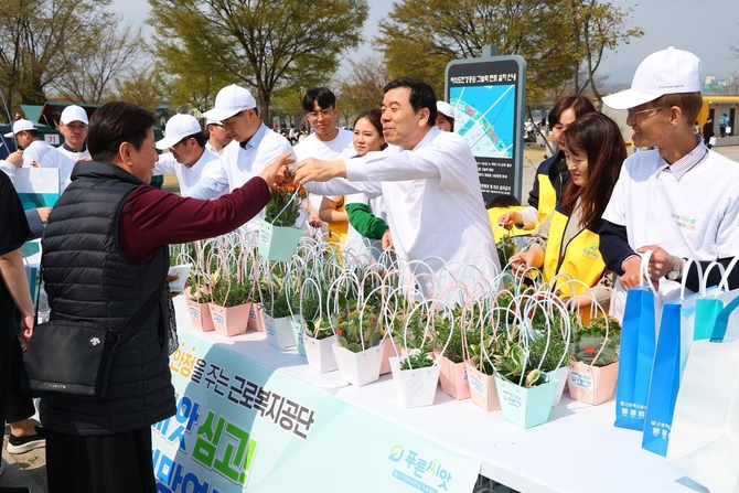 (조세금융신문=김종태 기자) 근로복지공단은 식목일인 5일 서울 여의도 한강공원에서 시민들에게 미니 화분과 씨앗 키트를 나눠주며 중소기업 퇴직연금기금제도 '푸른씨앗'을 홍보했다.