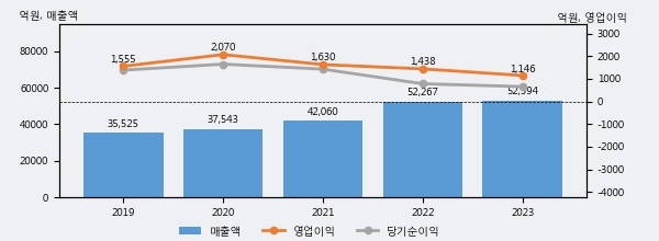최근 3년간의 실적을 살펴보면 안정적 성장세를 보이고 있다. 최근 3년간 매출로 볼 때 매년 꾸준히 증가하고 있다. 다만 최근에 그 증가폭이 다소 감소하고 있다.
