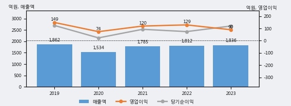 최근 3년간의 실적을 살펴보면 안정적 성장세를 보이고 있다. 최근 3년간 매출로 볼 때 매년 증가하고 있다. 다만 최근에 그 증가폭이 다소 감소하고 있다.
