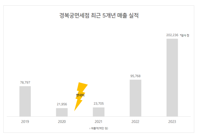 경복궁 면세점은 그간 코로나 여파로 2020년부터 2021년까지 매출액이 급감했으나 대기업도 포기했던 인천공항 출국장 면세점을 이어받아 직원들과 함께 힘든 시간을 견뎌 이겨냈다.